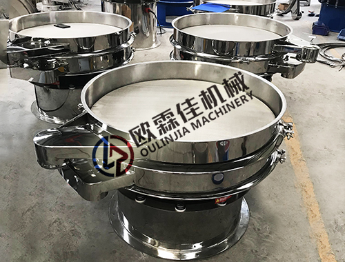食品添加劑振動篩整機使用304不銹鋼或316L不銹鋼材質制作,該機所使用的密封件與清完彈球全部使用食品級硅膠材質,接觸物料部件里、外雙鏡面拋光處理,根據用戶要求可對不銹鋼焊縫進行磨平、拋光處理,整機符合GMP標準。