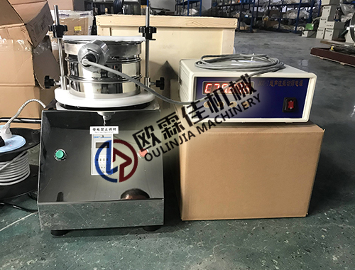 超聲波檢驗篩是以振動電機作為振動源的,振動電機振動帶動篩機底座振動,再通過底座傳導到安放在底座上的標準檢驗篩上,使小于檢驗篩篩面網孔的物料顆粒篩分進下層檢驗篩,如此層層篩選,使每層檢驗篩內只留相同粒度的物料。達到不同粒度的分離并確定此物料的粒度組成。使檢驗篩中的物料能有效地篩分、分級、過濾的目的。